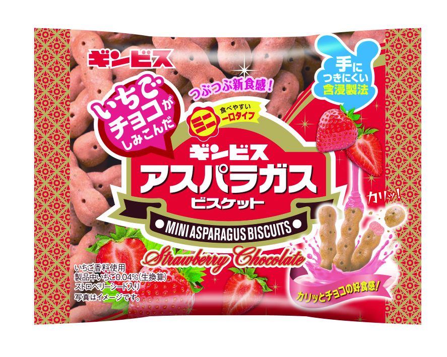 ギンビスの「アスパラガス」シリーズは「チョコがしみこんだミニアスパラガス」などの新製品が牽引したことも手伝い、昨年は対前年比130%の大躍進となった。今年になっても対前年比超えが続くなど好調をキープ。その勢いそのままに、同シリーズからの「自信作」が登場する(9月発売)。